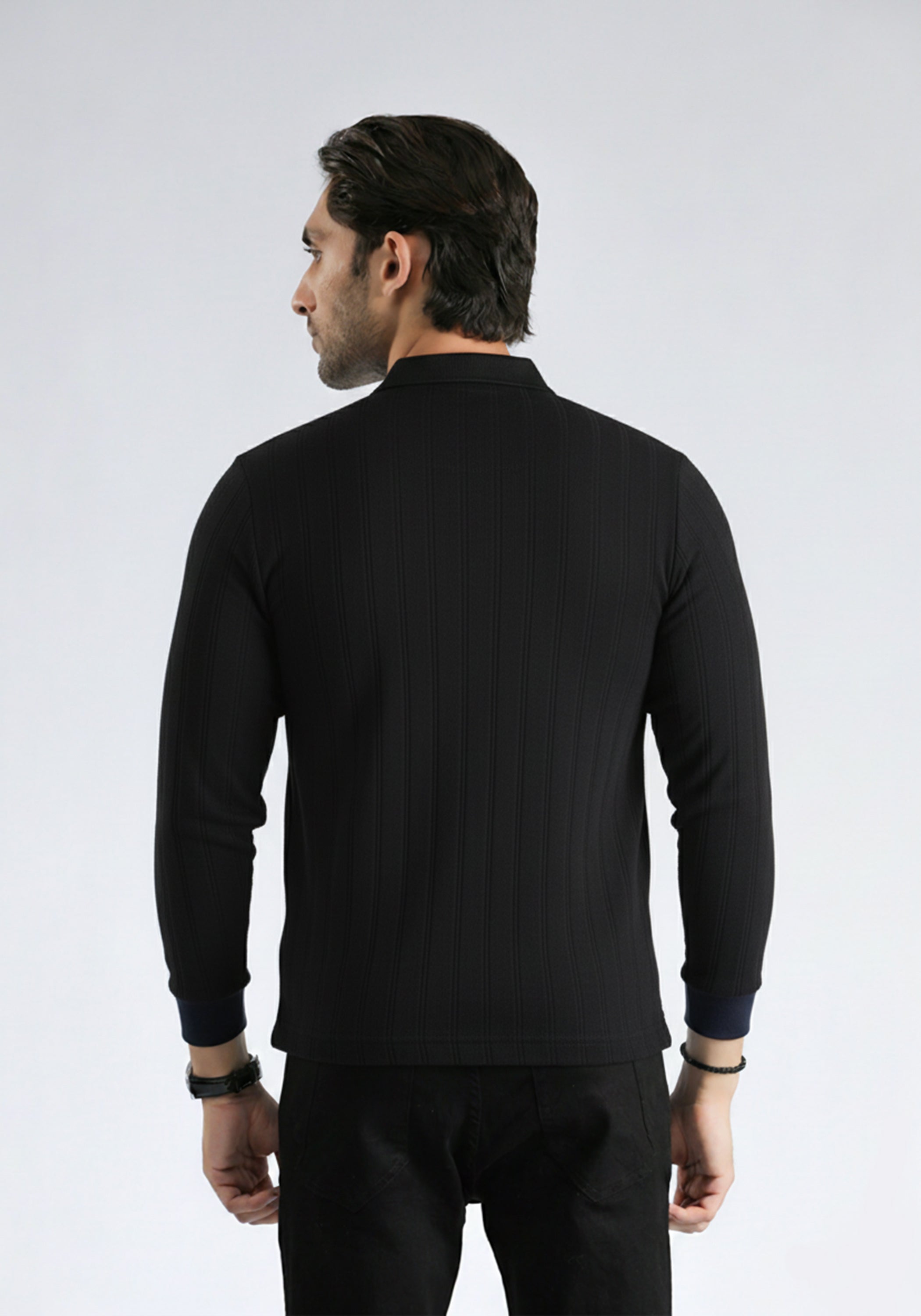 This Black Texture T-Shirt features full sleeves and a subtle textured fabric, blending refined style with everyday comfort. Its sleek design and rich black shade make it a versatile choice for both casual and polished looks, perfect for elevating your wardrobe with understated elegance.