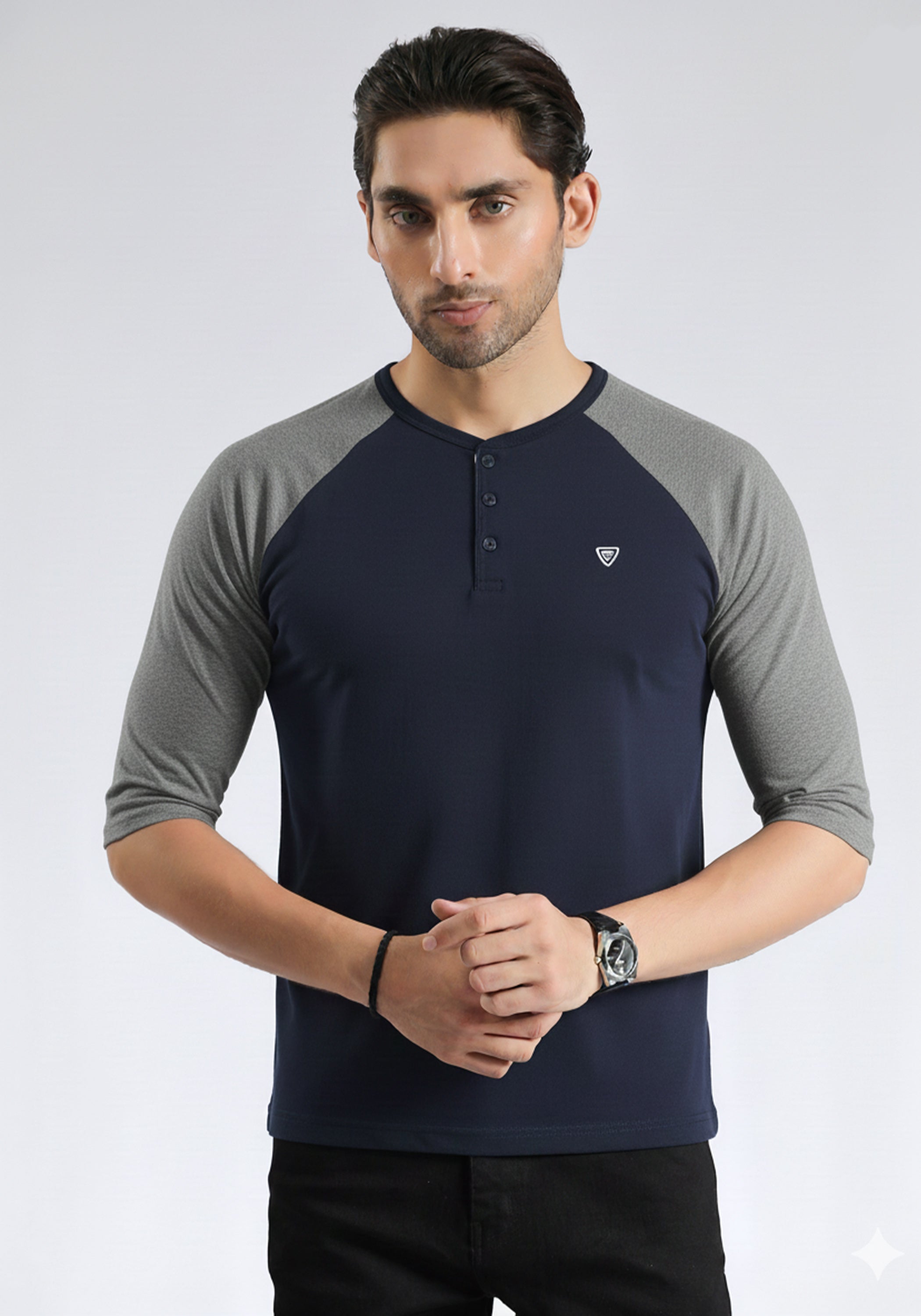 Elevate your wardrobe with this Full Sleeves Navy Grey T-Shirt for men. Crafted in a refined navy grey tone, its full sleeves provide both style and comfort, making it suitable for cooler days or layering. The tailored fit enhances a sleek silhouette while offering versatility for casual or smart-casual occasions. An essential piece that combines understated elegance with everyday practicality.