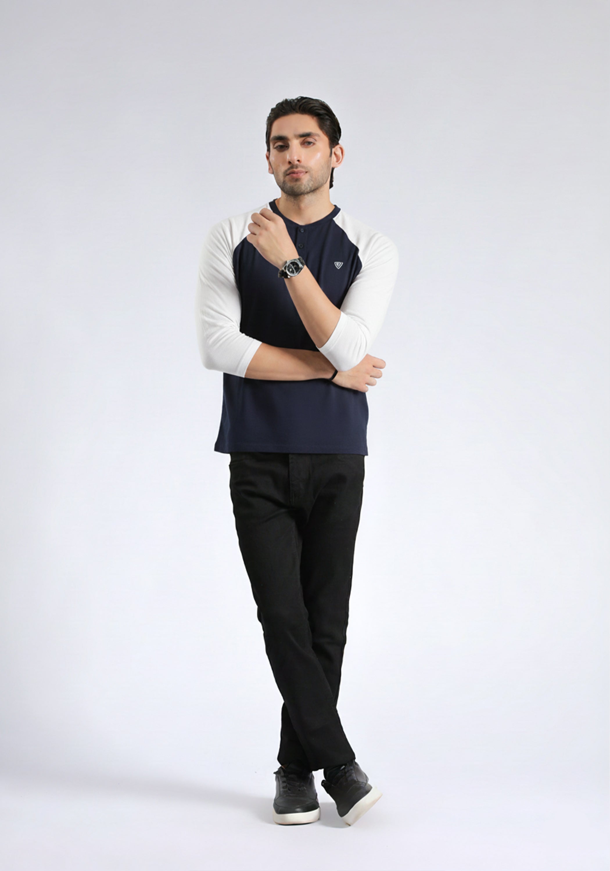 Elevate your wardrobe with this Full Sleeves Navy White T-Shirt designed for men. Featuring a refined navy and white color combination, it offers a sleek, timeless look that seamlessly blends comfort with style. The full-length sleeves provide added warmth and a polished silhouette, making it an ideal choice for both casual and semi-formal occasions. Crafted to deliver a sophisticated yet effortless fit, this T-shirt enhances your everyday ensemble with understated elegance.