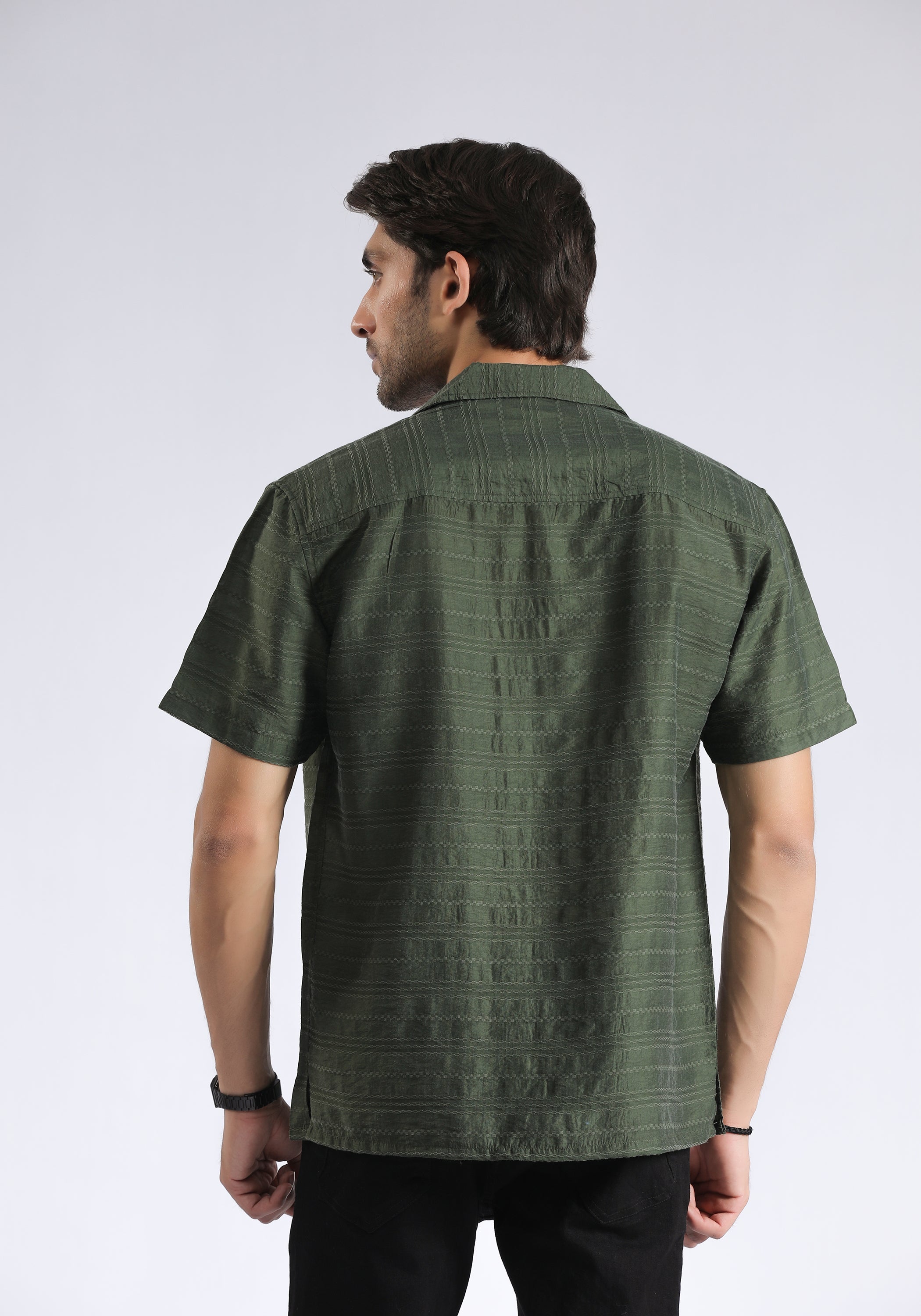 Indulge in luxury with our Green Self Textured Shirt for men. Crafted from premium quality cotton, this Half-sleeved shirt features a unique green textured design that exudes sophistication and exclusivity. Elevate your style game with this tasteful and elegant piece.