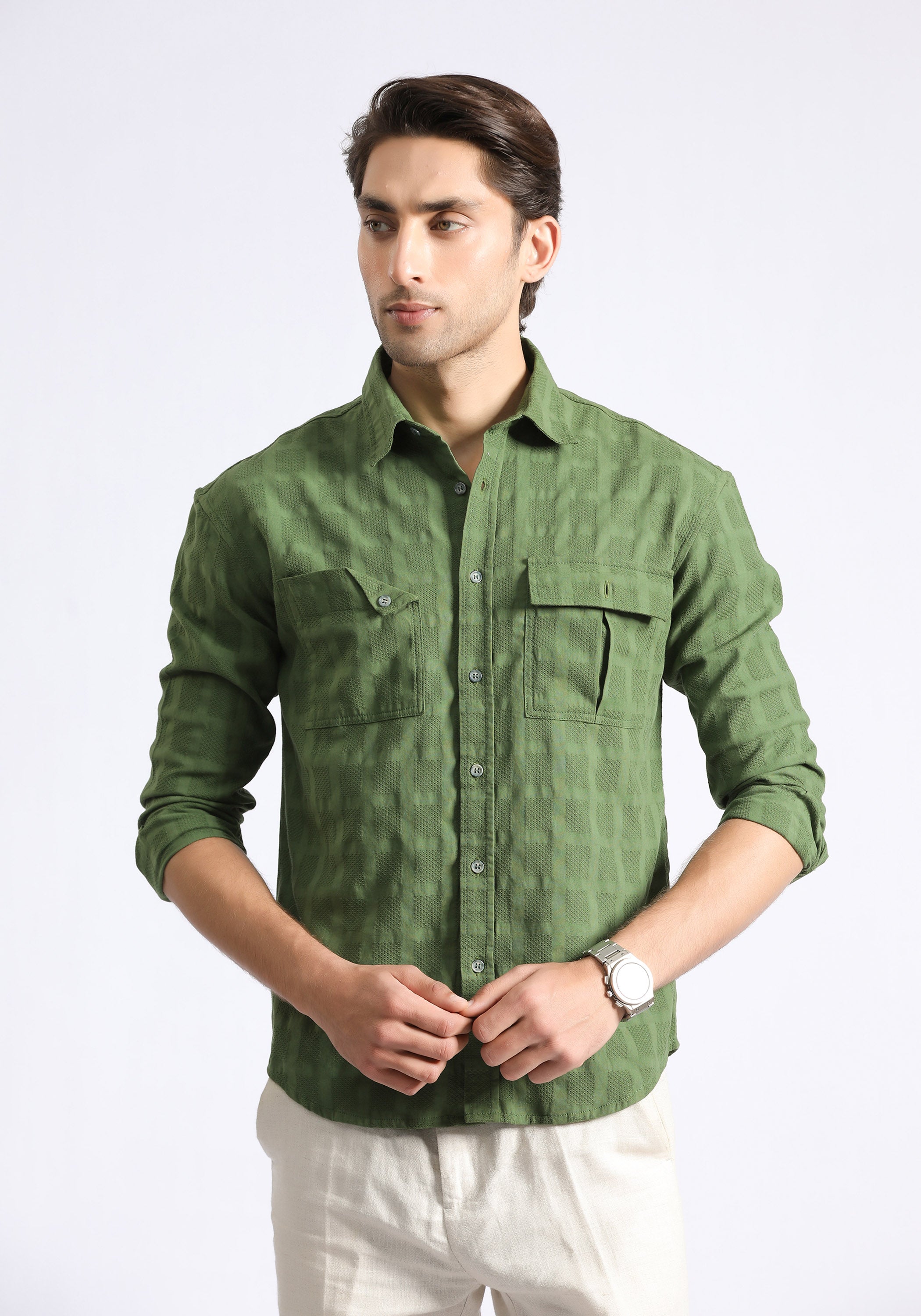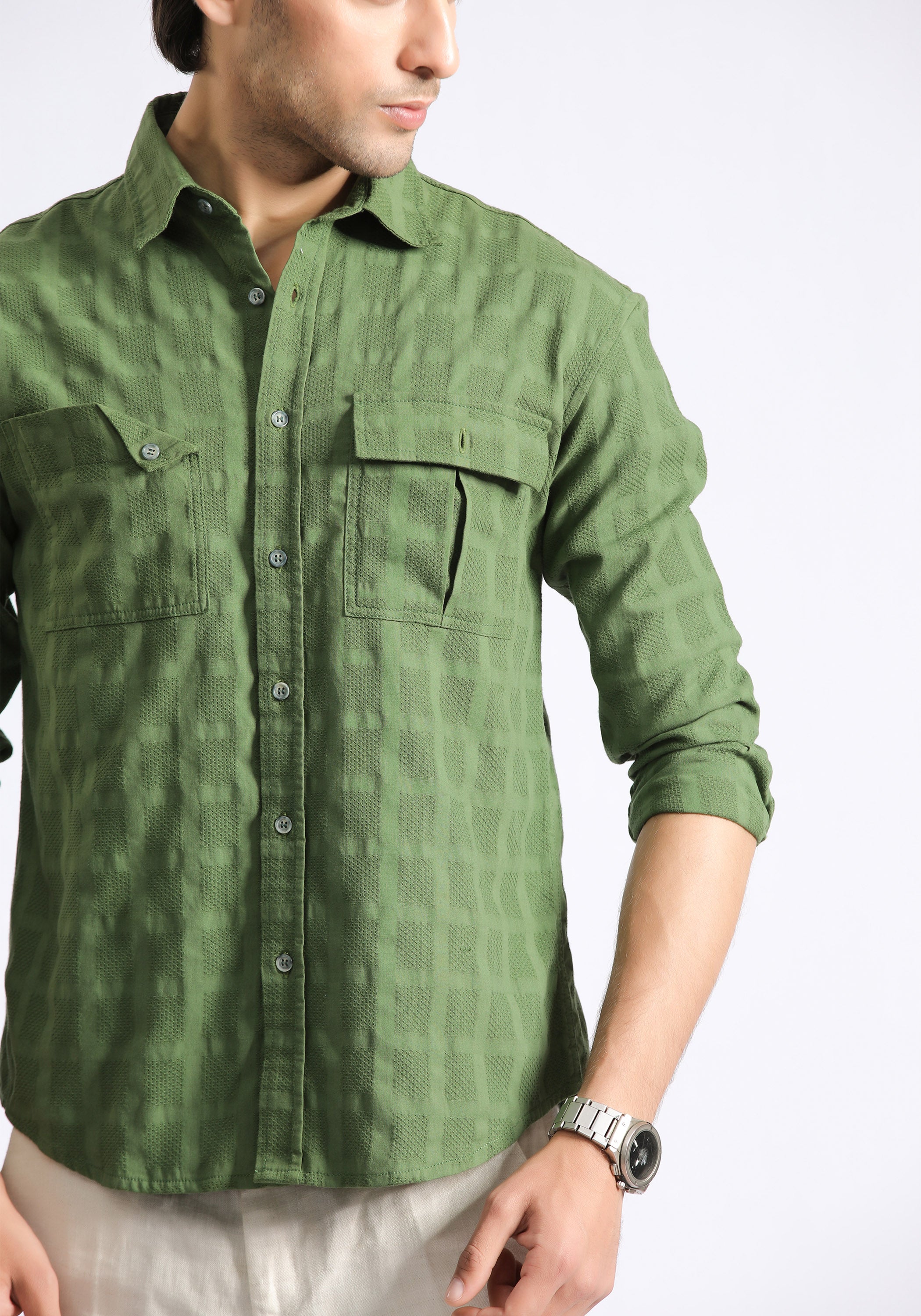 Indulge in the luxurious texture and vibrant hue of our Green Textured Shirt. Smooth and sophisticated, this shirt is designed for the modern man with an eye for style. Elevate your wardrobe with this exclusive piece that exudes elegance and taste.