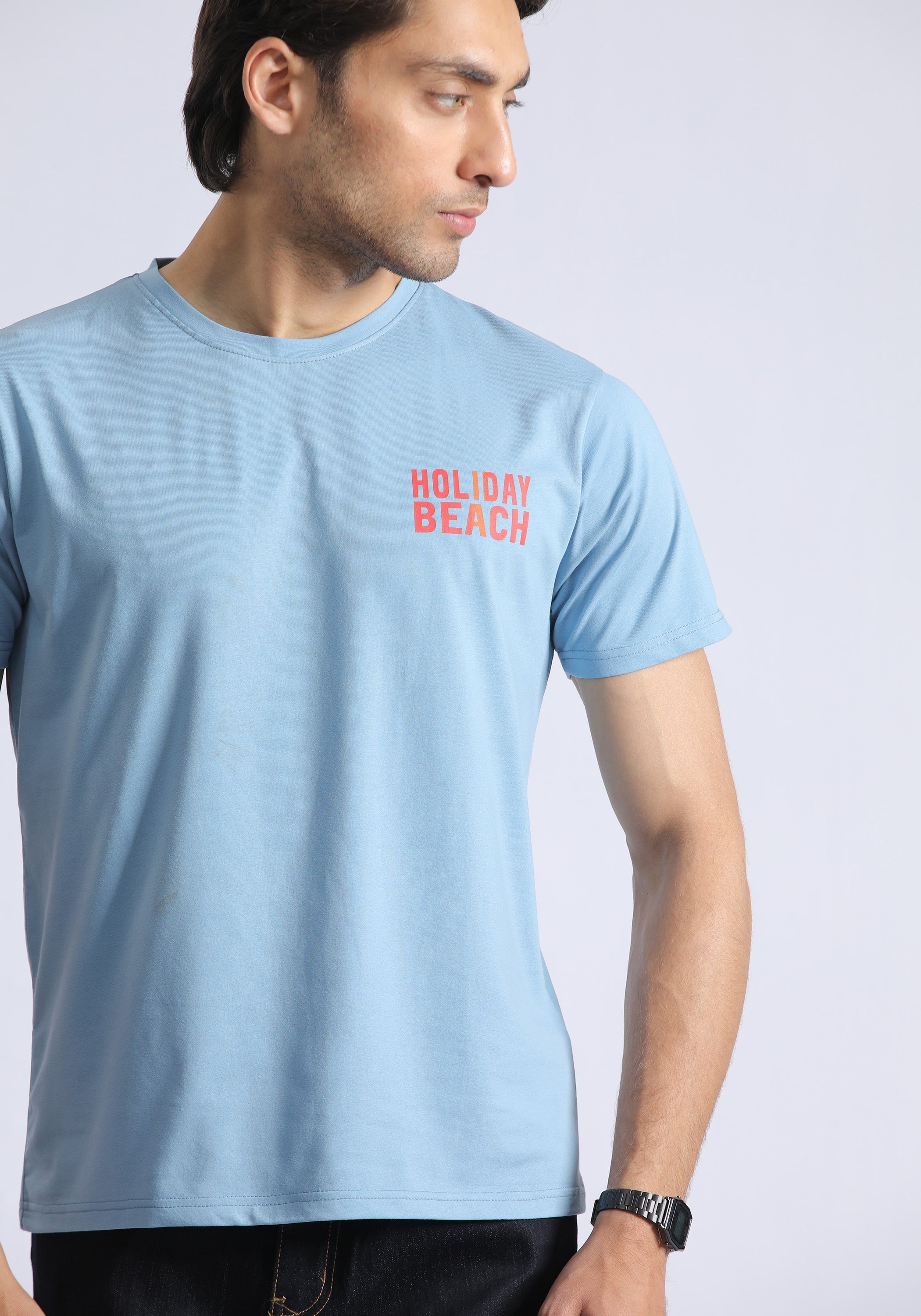 Elevate your wardrobe with our luxuriously soft Light Blue T-Shirt for men. Made from premium cotton, this half sleeve shirt is the epitome of comfort and style. Perfect for any occasion, its light blue hue exudes sophistication and effortless elegance. Upgrade your collection today.