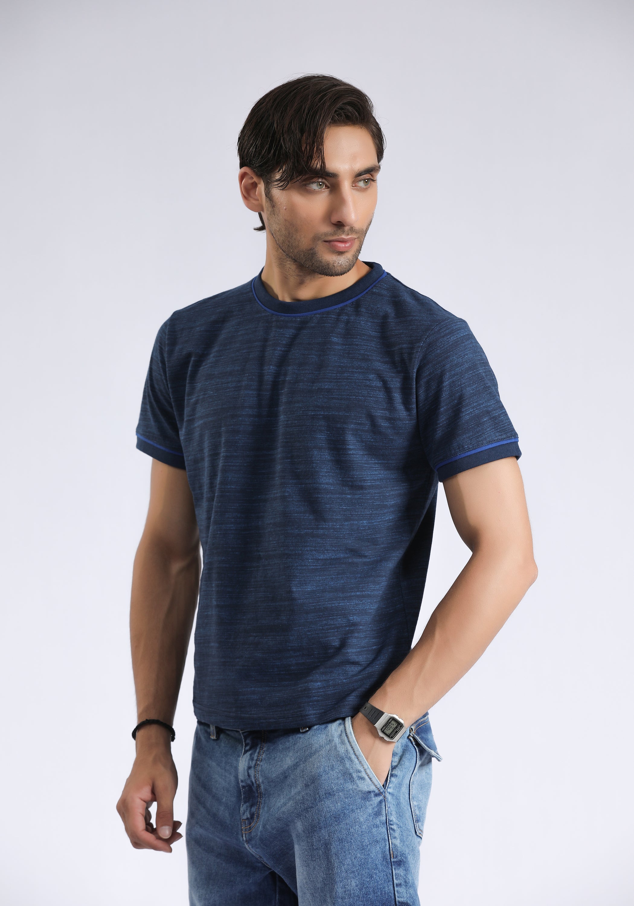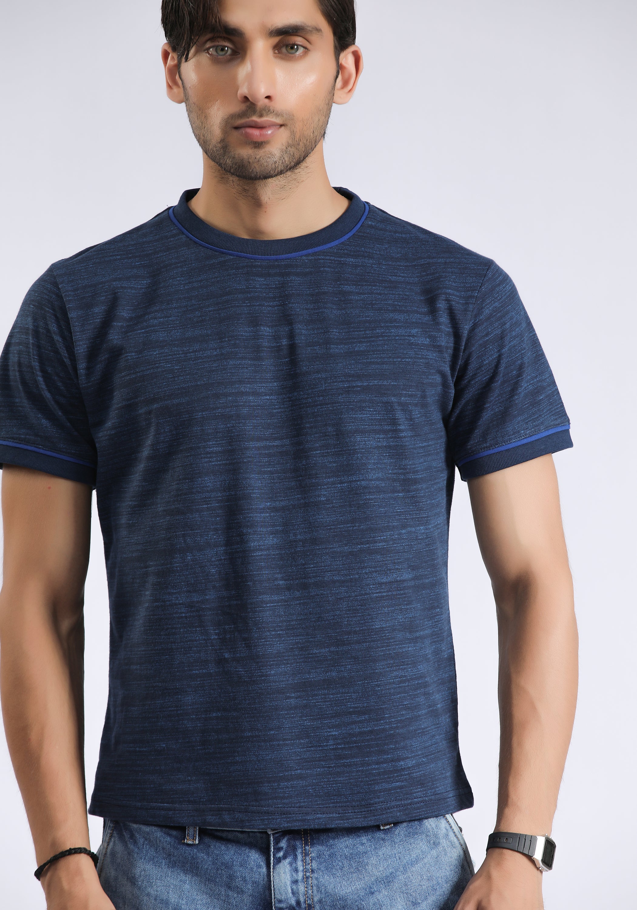 Embrace elegance and luxury with our Midnight Navy T-SHIRT FOR MEN. Crafted from soft, breathable cotton, this half sleeve t-shirt offers both style and comfort. Perfect for any occasion, its rich navy hue adds a touch of sophistication to any outfit. Upgrade your wardrobe with this exclusive piece.