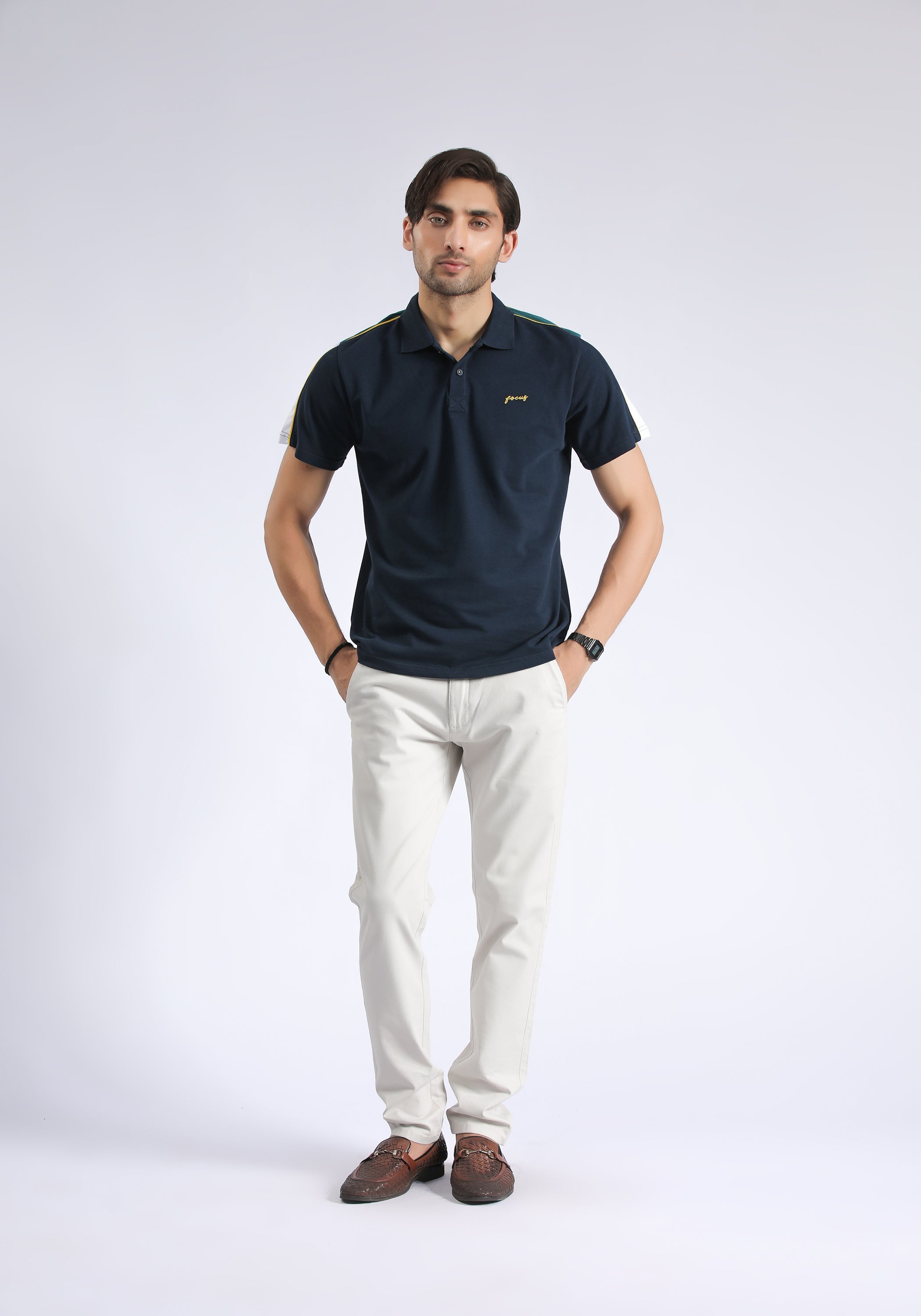 Elevate your wardrobe with our Navy Plain Polo Shirt for men. Crafted from fine cotton, this versatile shirt exudes sophistication and style. Perfect for any occasion, its timeless design and luxurious material will keep you looking and feeling your best. Upgrade your fashion game with this elevated piece.