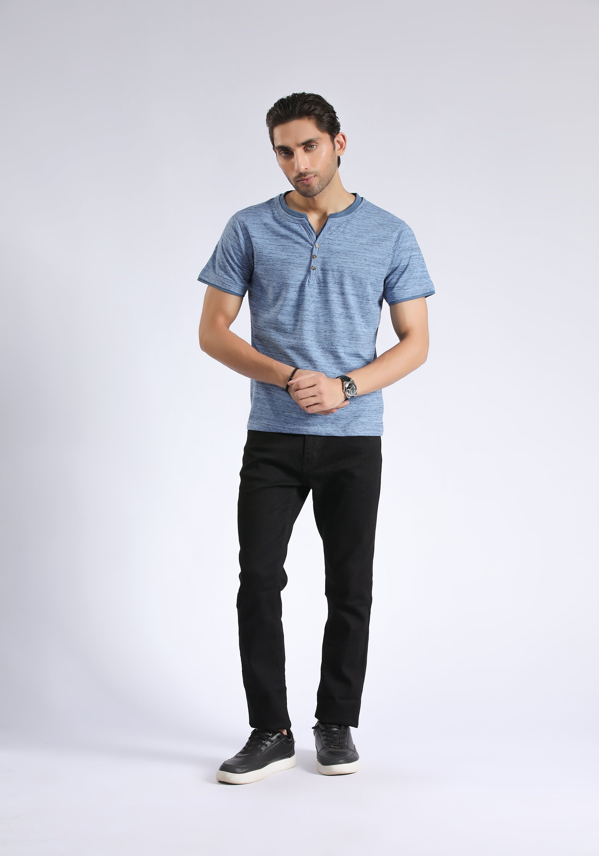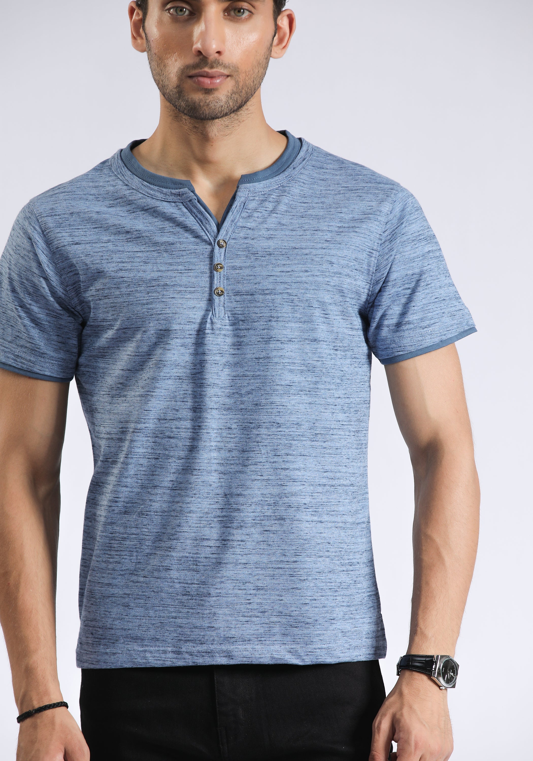 Elevate your casual wardrobe with our Sky Blue Textured T-Shirt. Crafted from premium cotton, this half-sleeve shirt exudes sophistication and style. Its subtle texture adds a touch of refinement to any outfit, making it a versatile addition to any fashion collection. Upgrade your look with this exclusive piece.