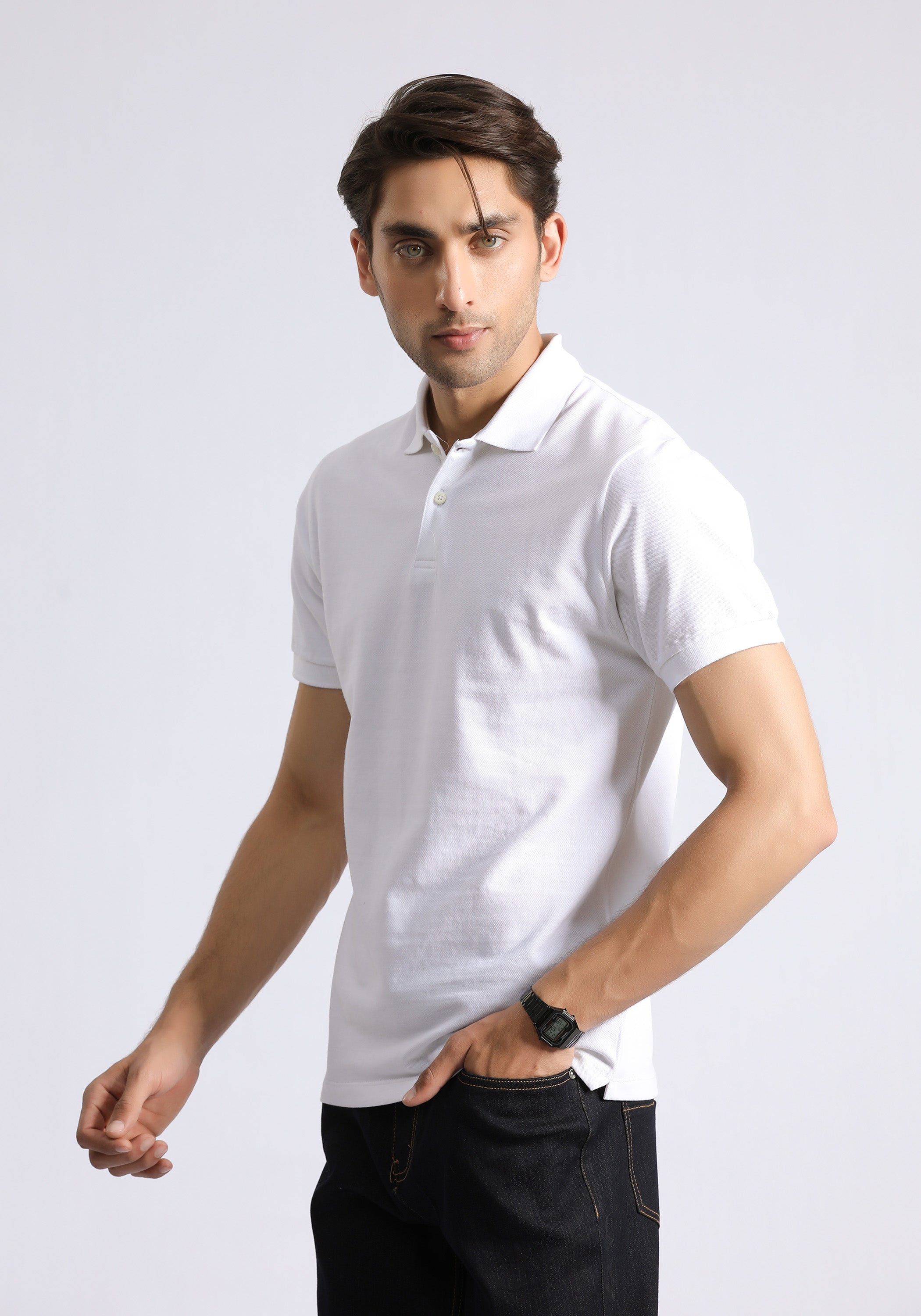 Elevate your style with our White Polo T-Shirt for men. This sleek and sophisticated piece is crafted from high-quality fabric for a luxurious feel. Perfect for any occasion, the crisp white color exudes elegance and effortless charm. Elevate your wardrobe with this must-have essential.